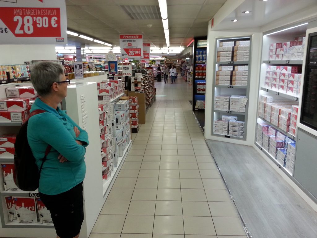 We went to a supermarket just before we left Andorra. There were more cigarettes there than I’ve ever seen before! Some brands had special offers – buy 3 cartons, get a free bottle of booze, or free lighters. And there was even one brand that was sold by the bucket – approx 198 cigs in it. Yuck! I guess the prices were good, I have no idea how much a packet of cigs is at home. Anyway, we got some food and a tetrapak of wine ‘cos we are complete philistines (and they fit in our fridge better than glass wine bottles) and headed south towards Valencia.