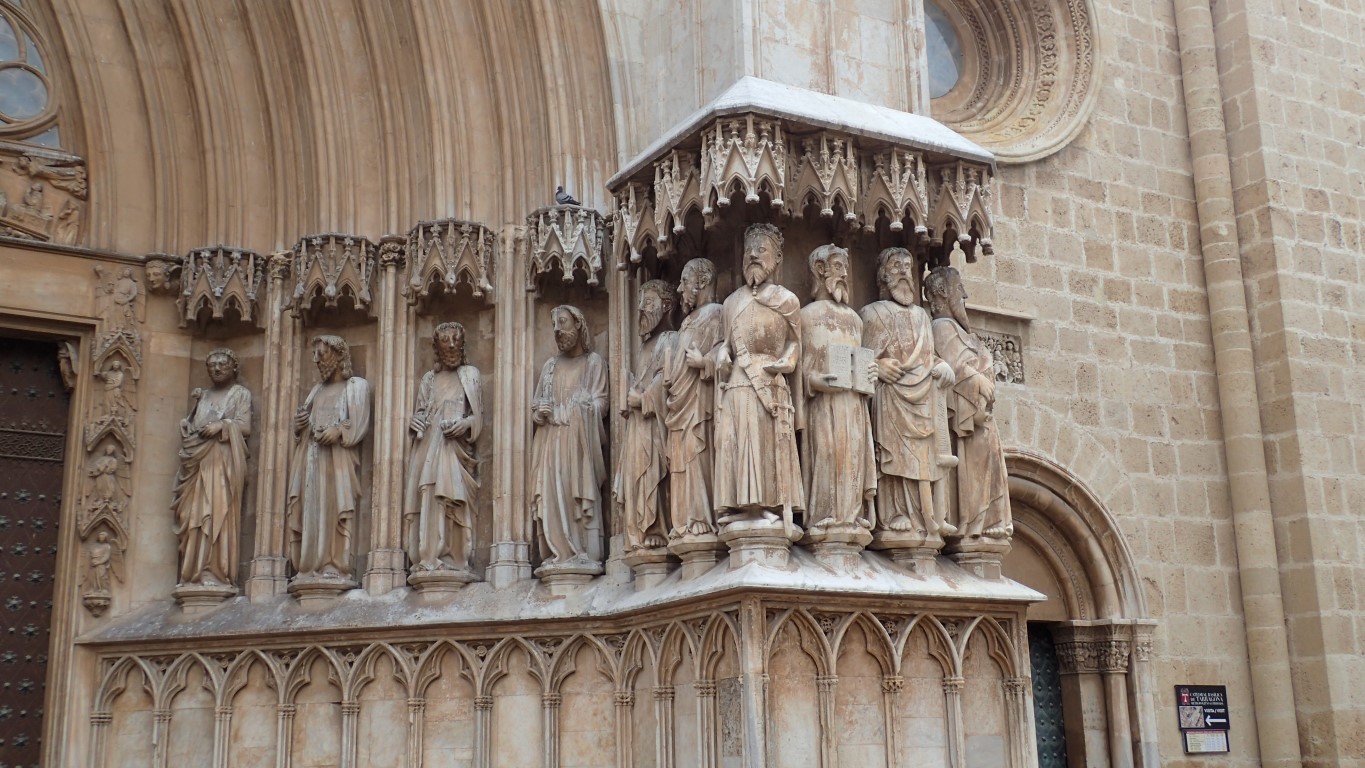 We parked just outside the old city walls, which now have apartments built into and on top of them. Walked through the old town to the cathedral, whose spire is the highest point of the town and can be seen for miles. Along the way, there were posters everywhere advertising the Festival of Santa Tecla Saint Thecla (a saint of the early Christian Church and reported follower of Paul the Apostle), which was happening while we were there. And we found out after a bit more research that one of the highlights of the festival – the human tower display – was happening the next day, Saturday. More on that later.