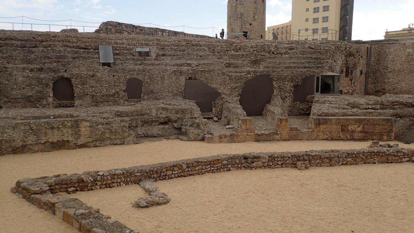 There are some excellent historical Roman sites in Tarragona – the amphitheatre near the beach, which also contains the remains of a couple of 6th and 12th century churches. The original stone from the amphitheatre was used to build the nearby port, so what is now there is a partial reconstruction. Right near one part of the city walls is the ruins of the Roman circus, the ancient chariot racetrack. If you follow the modern road up to the right of the circus, you can see the apartments built above the city wall.