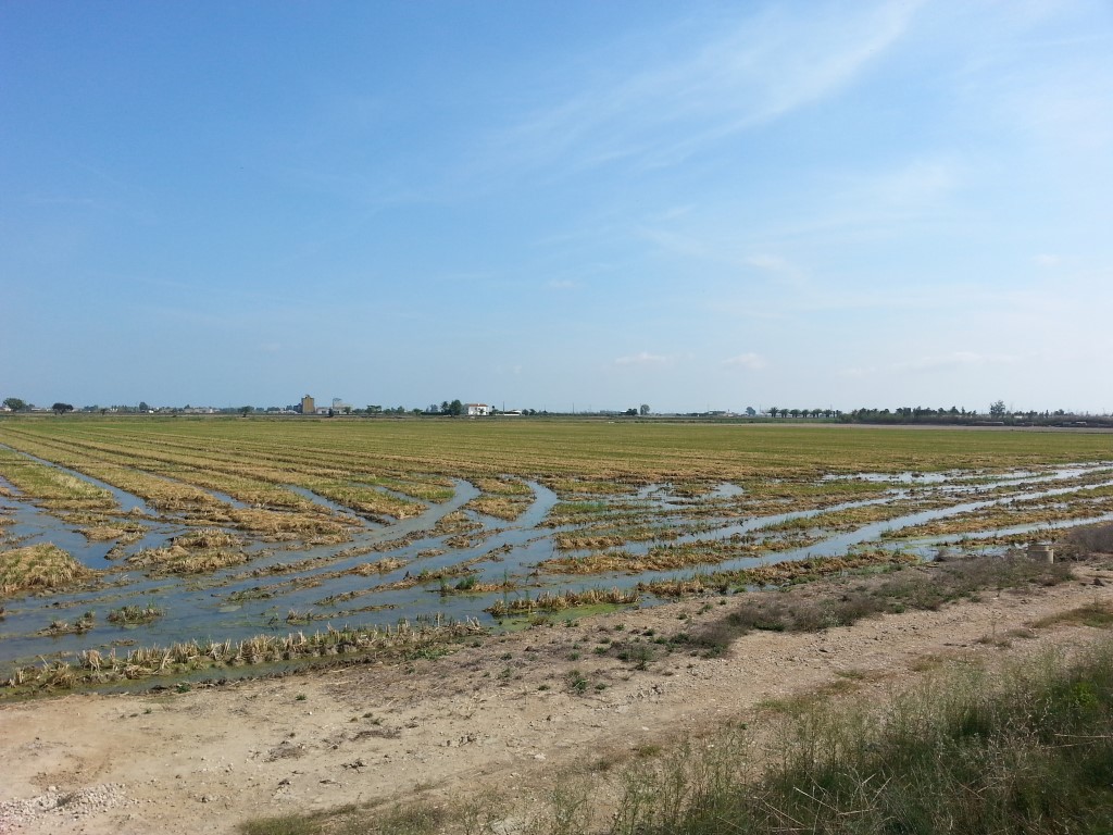 Following on from our afternoon of watching human tower-building, we once again pointed the car in the direction of Valencia, and once again found something else to distract us along the way. The delta of the River Ebre is about 90kms south of Tarragona and looked like an interesting place to visit. Lots of birds especially in autumn. We found a campground near the delta and headed there. Along the way we noticed fields full of stubble that also had a lot of groundwater. But why? It hadn’t rained much in the last few days. Took us a while to realised that this is a rice-growing area and what we were seeing were the remains of the last crop. As we got further along, we also saw newly planted areas and crops that looked almost ready to harvest.