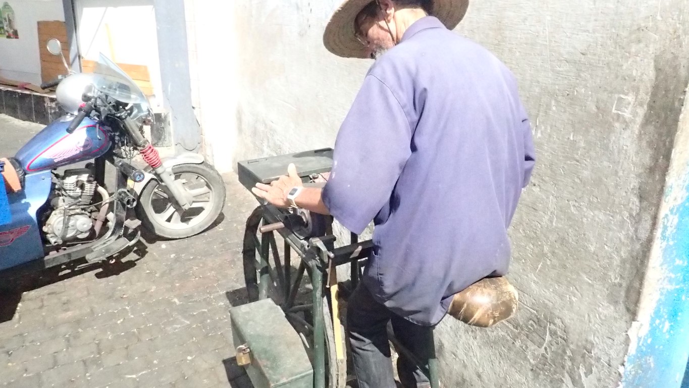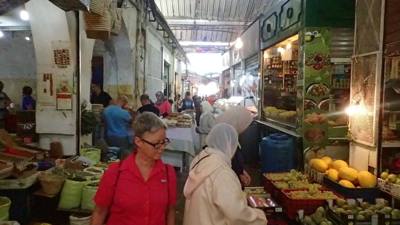 Tangier is a large city, with a large bustling new (ie, less than 100 years old) area and the old historic Medina (old walled city in Arabic). It’s the second-most important Moroccan city after Casablanca. Most people we interacted with spoke Berber, French and some English. We started off in the modern part with a visit to the supermarket for water, flatbreads and a few other things, then a walk along one of the main streets and then coffee, juice and a pastry at McDonalds, mainly because … clean toilets. Then we walked to the Medina which was absolutely alive with activity and people and stalls and traffic. I was interested to see greengrocers unpacking boxes of cherimoya custard apples which had come from Almuñécar, where we’d camped a few days ago, just after we left Granada. I now realise that a lot of the orchards we could see from our campsite were growing custard apples.