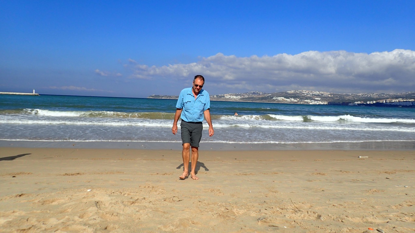 Tarifa is at exactly 36 degrees north, it’s the southernmost point of Spain and Continental Europe and it’s where the Mediterranean and Atlantic Seas meet. It’s one of the world’s most popular destinations for wind sports including windsurfing and kite surfing, also whale watching and just ‘going to the beach’, which goes for several miles around the bay. We did go to the town beach and it looked good with nice sand. Tarifa has the ferry terminal for ferries going to Tangier in Morocco, which was our main reason for staying there.