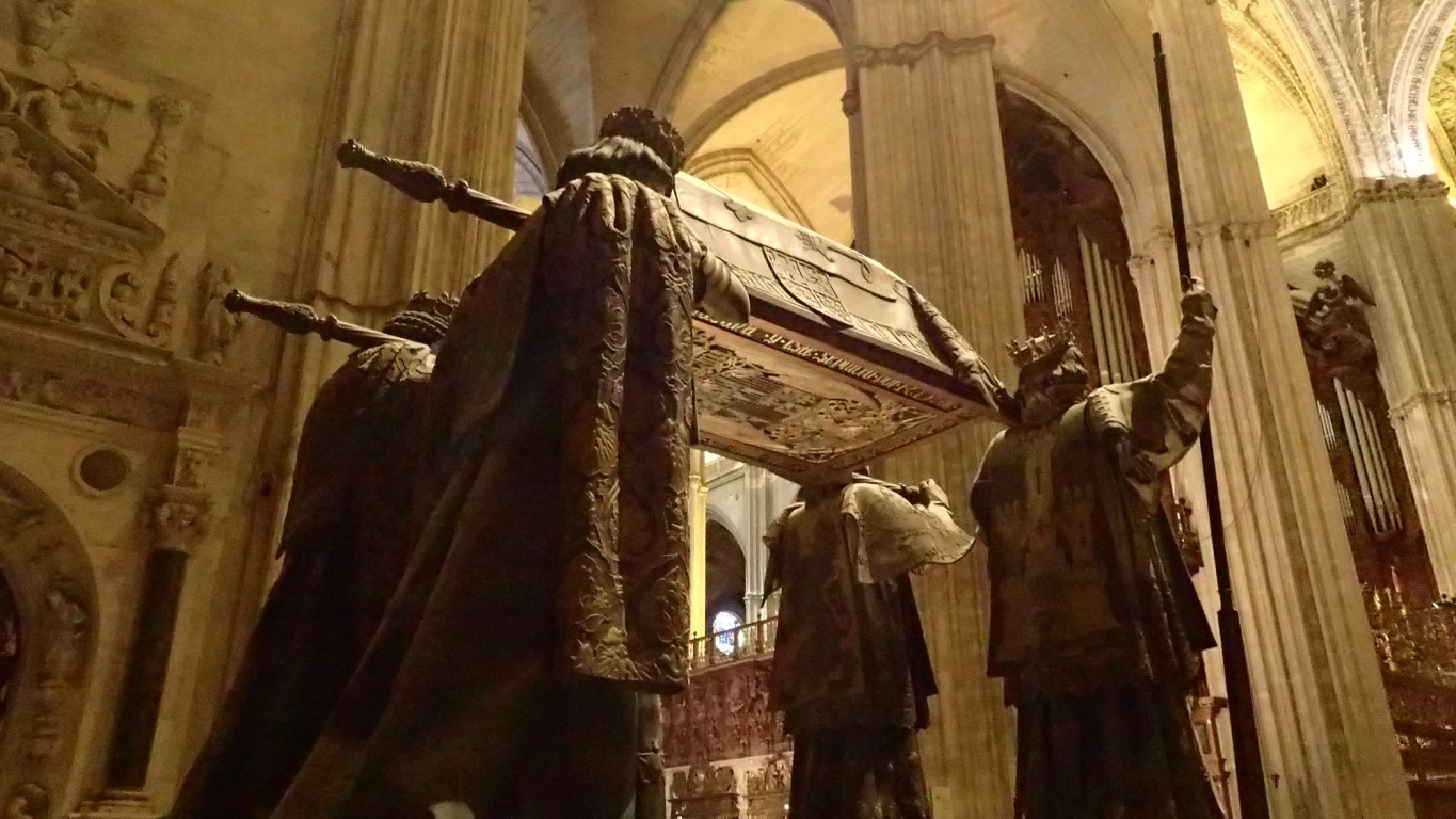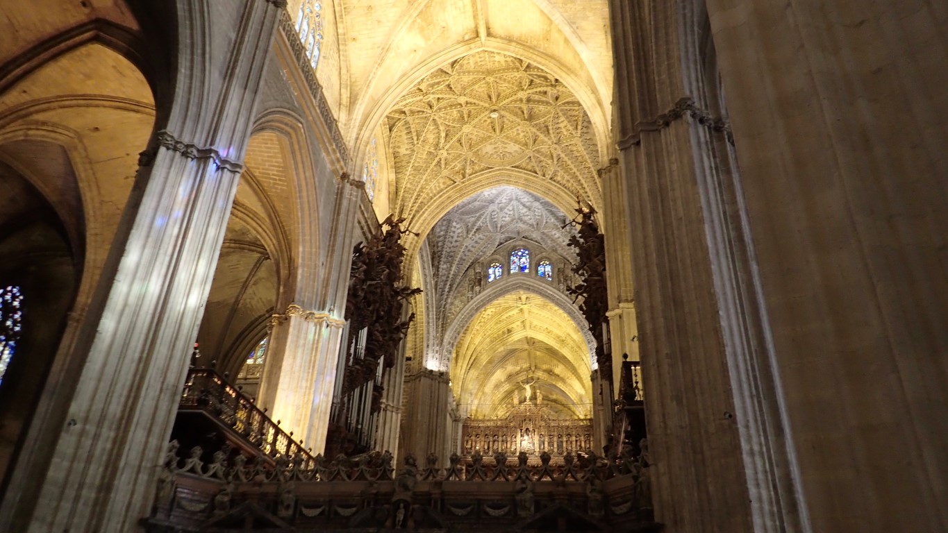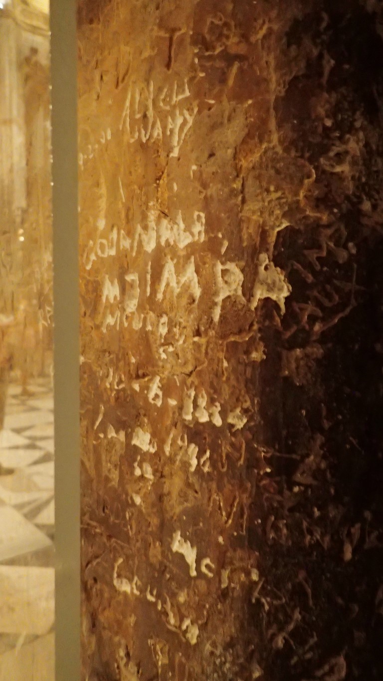 On Friday we visited the amazing Seville Cathedral, then on Saturday we visited the even more incredible Mezquita – the Mosque-Cathedral in Cordoba. Seville Cathedral is huge, third largest Christian church in the world, the largest cathedral (because the other 2 are not the seats of bishops) and the largest Gothic church. Like many of Spain’s churches, the site was originally a mosque, and the mosque’s minaret, El Giradillo, still stands beside it. The rest of the original mosque was knocked down in the early 15th century, and when the Cathedral was completed 100 years later, it was the largest church in the world by volume. Some sources claim that it still is.