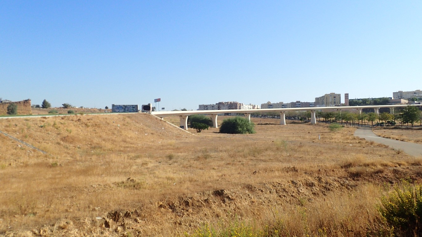 On the way back to our Airbnb, we drove a slightly different way and came to a deserted suburb. There were tram tracks with a big bridge going to who knows where, parking area, roads, street lights … everything except houses. We’ve been through another Spanish ghost town where there were houses, some finished and empty, others never finished, but this suburb with everything but the houses was really different.