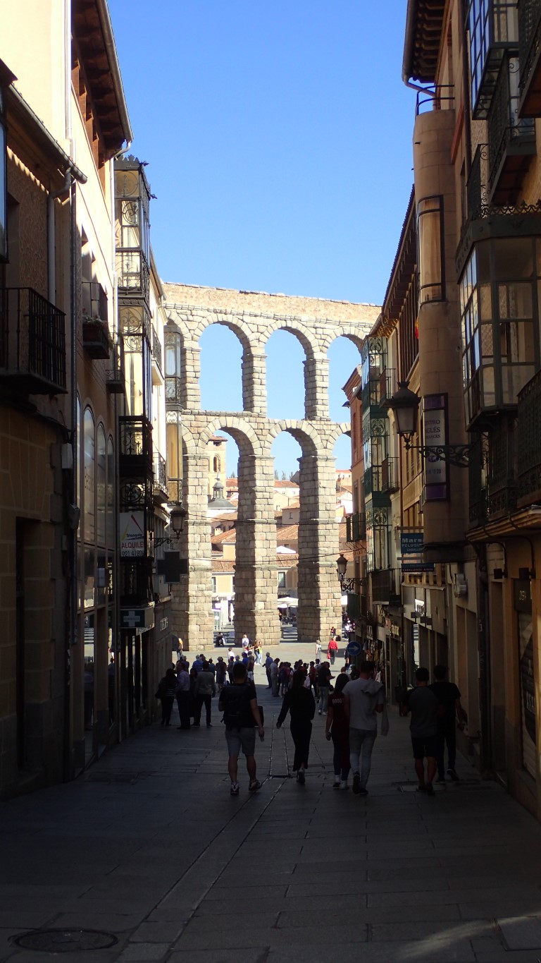 After our quick visit to Toledo, we skirted around Madrid, only stopping to visit the Costco in an outer suburb to get fuel before heading further north to Segovia. We stayed at a lovely Airbnb apartment there for 2 nights. The main drawcard at Segovia is an amazing stretch of Roman Aqueduct right at the edge of the old town. And then there’s the Alcazar Fortress, which was apparently used by Walt Disney as the inspiration for Sleeping Beauty’s castle at Disneyland in California. AND THEN there are the myths that the city was founded by Hercules or the son of Noah. Hmm .. let’s forget about the myths and talk about that Aqueduct and the Alcarzar. And lunch. Lunch was very good.