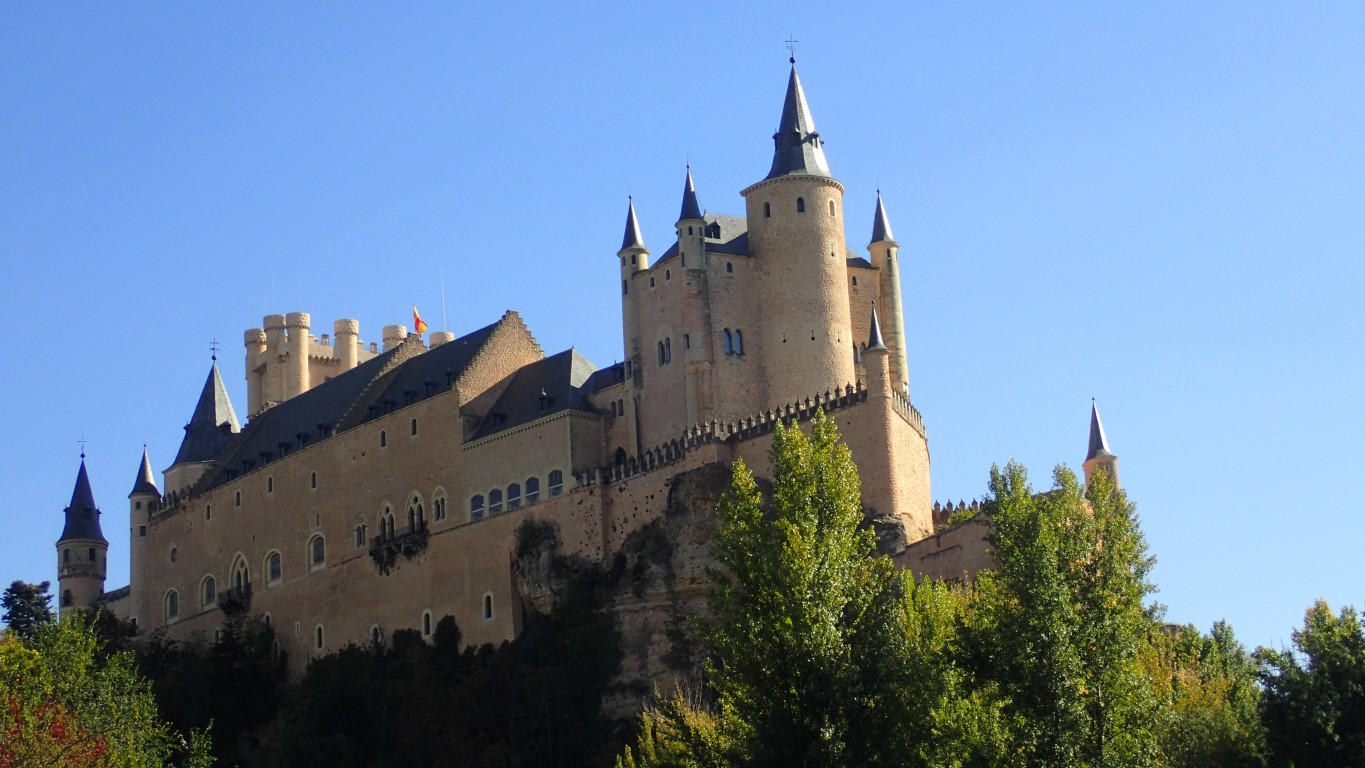 After that, we needed a big walk, so we headed to the Alcazar. Up a few hills, took a wrong turn somewhere, got back on course and eventually got to the top of the old part of town with the Alcazar on the edge. It looked … unimpressive … from the main entrance. A boxy fortress, a couple of turrets that were a bit reminiscent of Rapunzel and other fairytale princesses, but not really what we’d expected. We didn’t go inside because it all burnt down in the mid-19th century and what is now there seems to be an over-the-top reconstruction. We did find that Sleeping Beauty-like castle we were expecting when we drove to a viewpoint on the outskirts of town. Our Airbnb host has a lovely photo of it in snow, plus a few more on the Airbnb listing for his place – here.